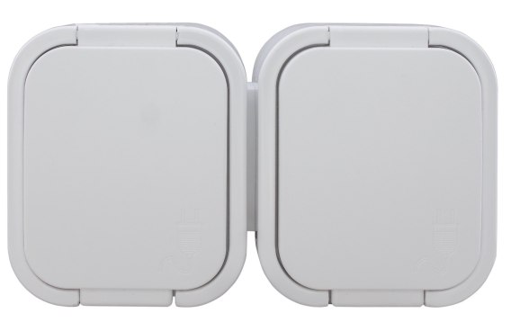 B2 GNIAZDO PODWÓJNE N/T Z/U IP54 BIAŁE KLAPKA BIAŁA