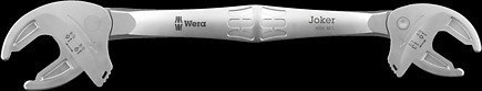 Samonastawny dwustronny klucz płaski do śrub z łbem sześciokątnym i nakrętek sześciokątnych o rozmiarach 13-16 i 16-19 (metryczne) lub 1/2"-5/8" i 5/8"-3/4" i 7/16"-8/16" (calowe). Regulowane bezstopniowo i prowadzone równolegle szczęki zastępują kilka pojedynczych wymiarów klucza płaskiego. Samoczynne dopasowanie do wymaganej wielkości po osadzeniu narzędzia na nakrętce lub śrubie sześciokątnej. Zintegrowany mechanizm dźwigni bezpiecznie zaciska śrubę sześciokątną lub nakrętkę pomiędzy szczękami, co znacznie zmniejsza ryzyko ześlizgnięcia i uszkodzenia. Mechanizm zapadkowy zapewnia szybkie i płynne dokręcanie bez przerywania. Zastosowanie pryzm w szczękach pozwala na uzyskanie kąta pracy wynoszącego zaledwie 30°. Funkcja grzechotki i pryzma w szczękach umożliwiają pracę nawet w wąskich przestrzeniach montażowych. Regulowany dwustronny klucz płaski Joker 6006 z funkcją grzechotki to uniwersalne narzędzie do dokręcania. Samonastawny. Gwarantujący pewny chwyt. Z mechanizmem zapadkowym.