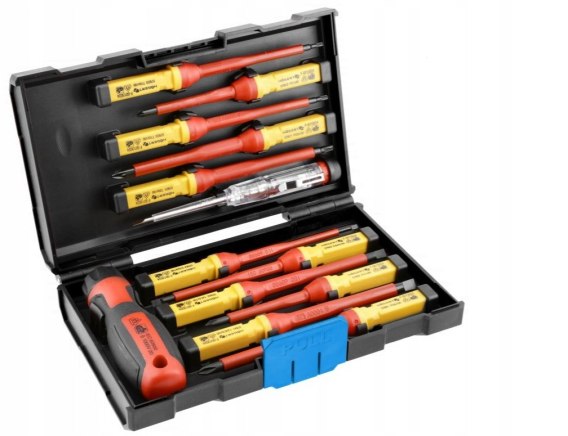 Zestaw wkrętaków izolowanych 1000 V z wymienną rękojeścią z próbnikiem napięcia przeznaczonym do wykrywania napięcia w gniazdkach: